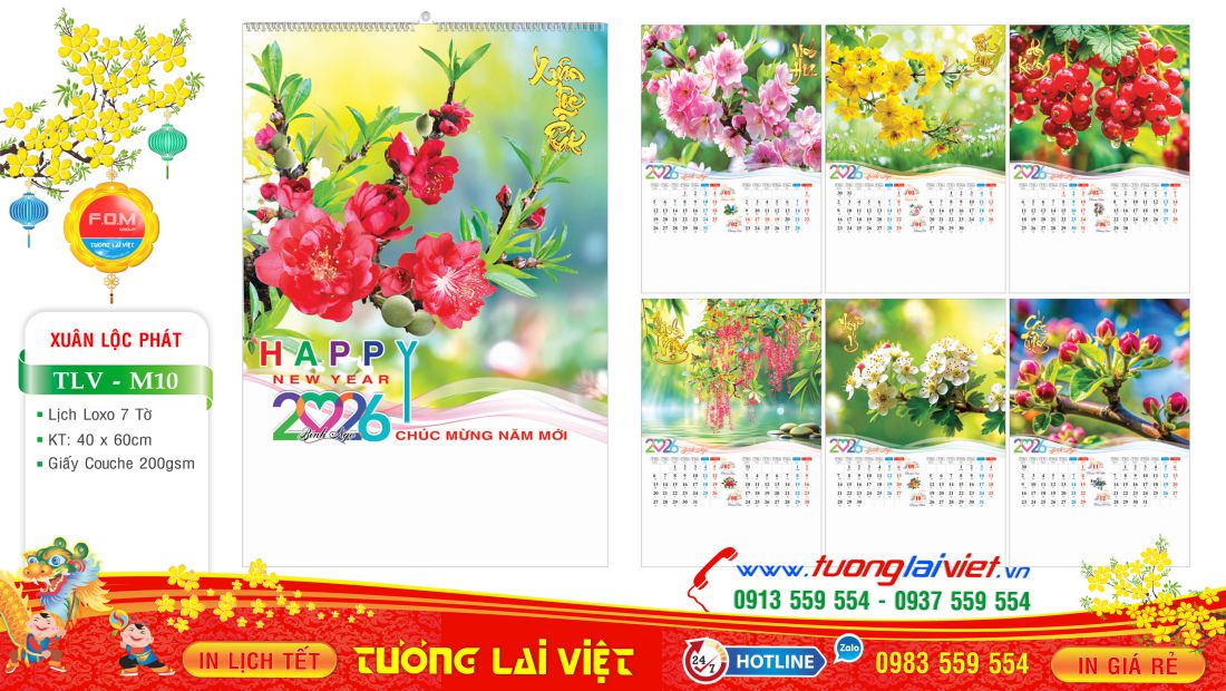 - Lịch Lò Xo 7 Tờ Xuân Lộc Phát được nhiều đơn vị, cơ sở chọn In Lịch Tết làm quà tặng khách hàng.